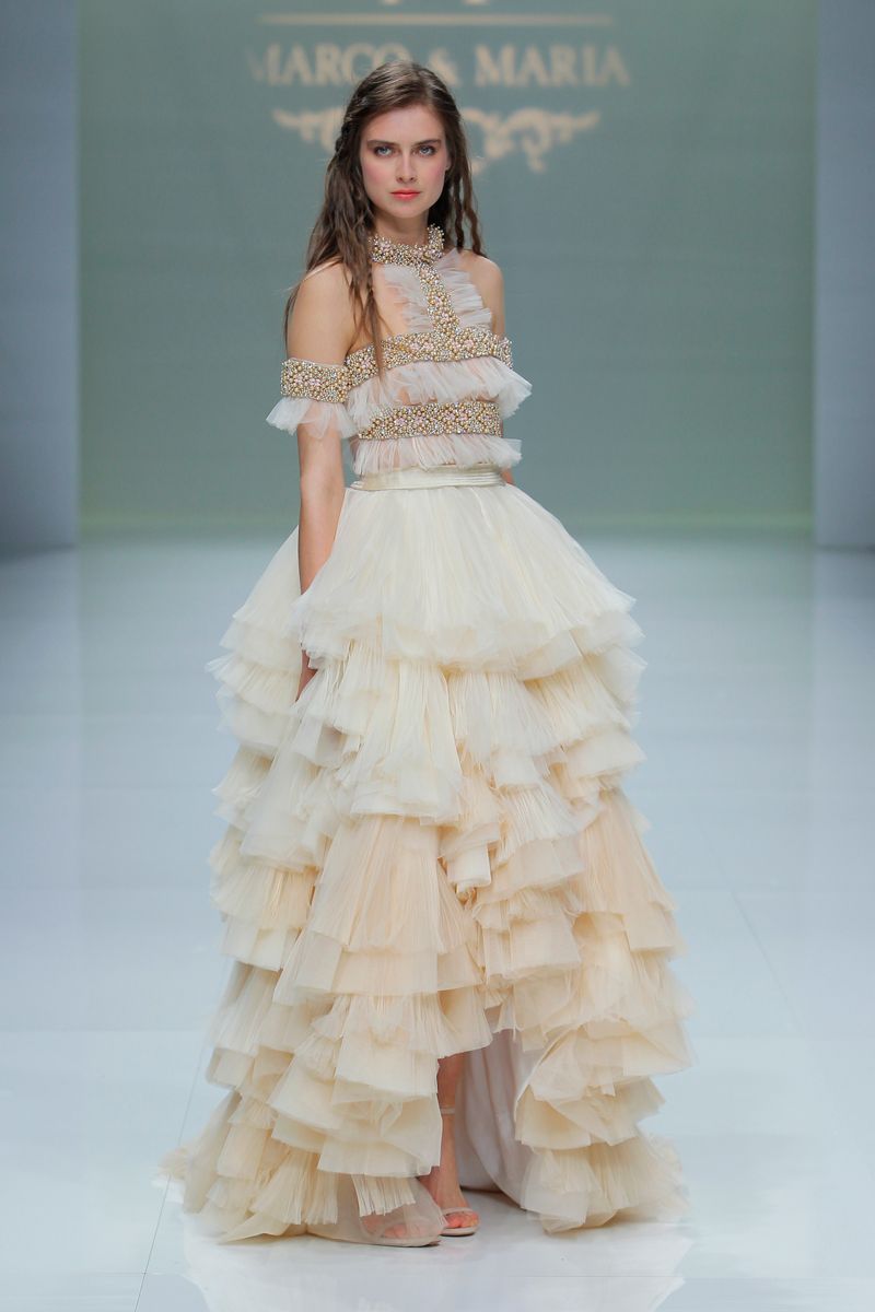 Este mes os estamos hablando de muchos diseñadores de vestidos de novia, pero es que hace poquito de la BBFW (si no sabes de que te hablo pincha aquí) y en ella se han lanzado nuevas colecciones de grandes diseñadores y no podemos perder la oportunidad de hablaros de algunos de ellos. Tranquilos, no van a ser muchos más, esta va a ser la última entrada hablando de diseñadores que han presentado su última colección en la BBFW. Fuimos invitados a acudir al desfile de Marco&Maria pero ya no estábamos en esa fecha en la ciudad condal, fue una autentica lastima, nos encantan los diseños rompedores de esa pareja de diseñadores.