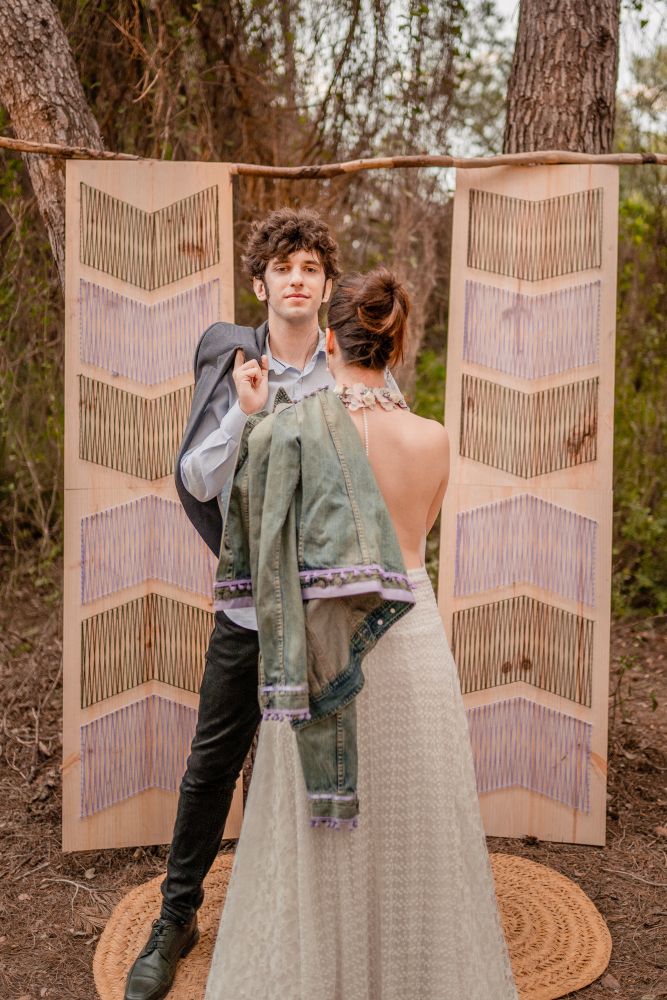 Para la ceremonia queríamos un altar diferente, y lo hicimos con dos tablones de madera al cual le hicimos un dibujo utilizando clavos e hilo de dos colores, no queríamos hacerlo con pintura, queríamos darle un toque de volumen y originalidad.