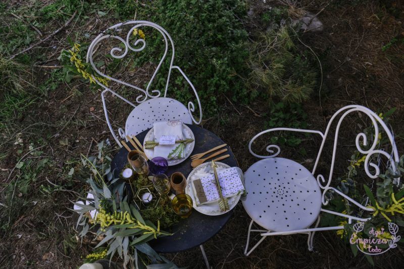 Queríamos plasmar un amor sereno y tranquilo. Una pareja amante de la naturaleza que siempre habían comentado que si algún día se casaban lo harían en un bosque, en un lugar apartado que es donde se sienten más cómodos. Por eso escogimos una ubicación que se llegaba por senderos frondosos llenos de vegetación pero que llevaban a un claro donde poder celebrar su amor.